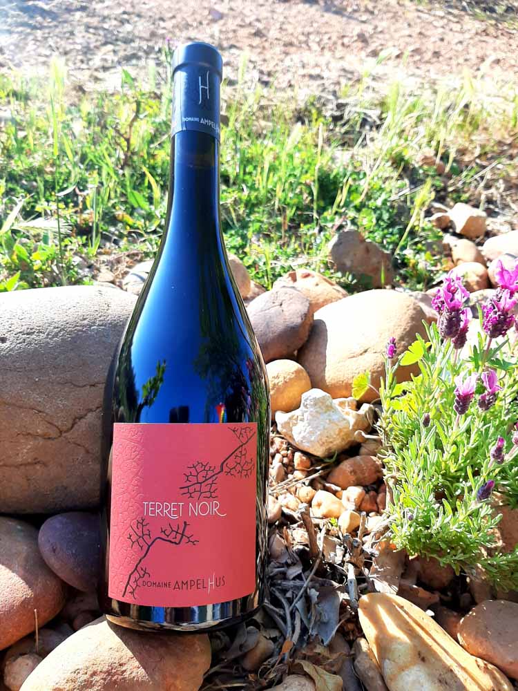Le Terret noir est un très ancien cépage d’origine languedocienne. Nous l’avons réintroduit au domaine Ampelhus sur nos meilleurs coteaux de galets roulés. Nous le travaillons afin de faire ressortir ses notes méditerranéennes de myrtes, ses arômes de garrigue et son profil bouqueté. Sa robe est de couleur cerise. Ses tanins restent fins et soyeux, s’harmonisant avec sa fraicheur très surprenante pour le Languedoc.